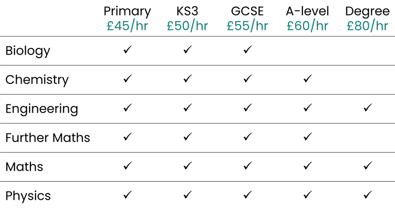 I can cover a wide range of subjects up to GCSE level so if you need help with subjects beyond my six core areas, don't hesitate to get in touch, and let's discuss how I can best support your learning journey.